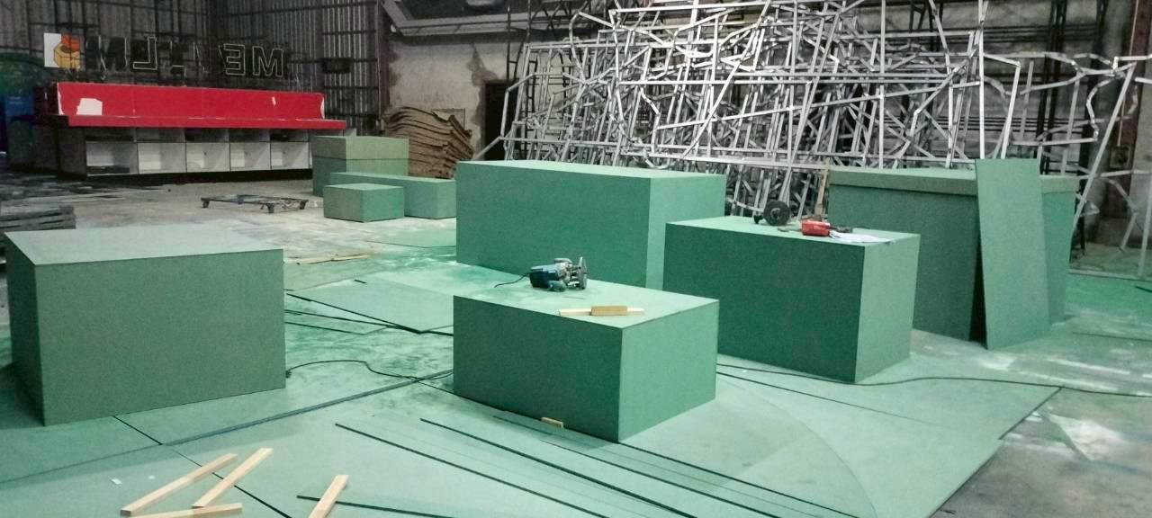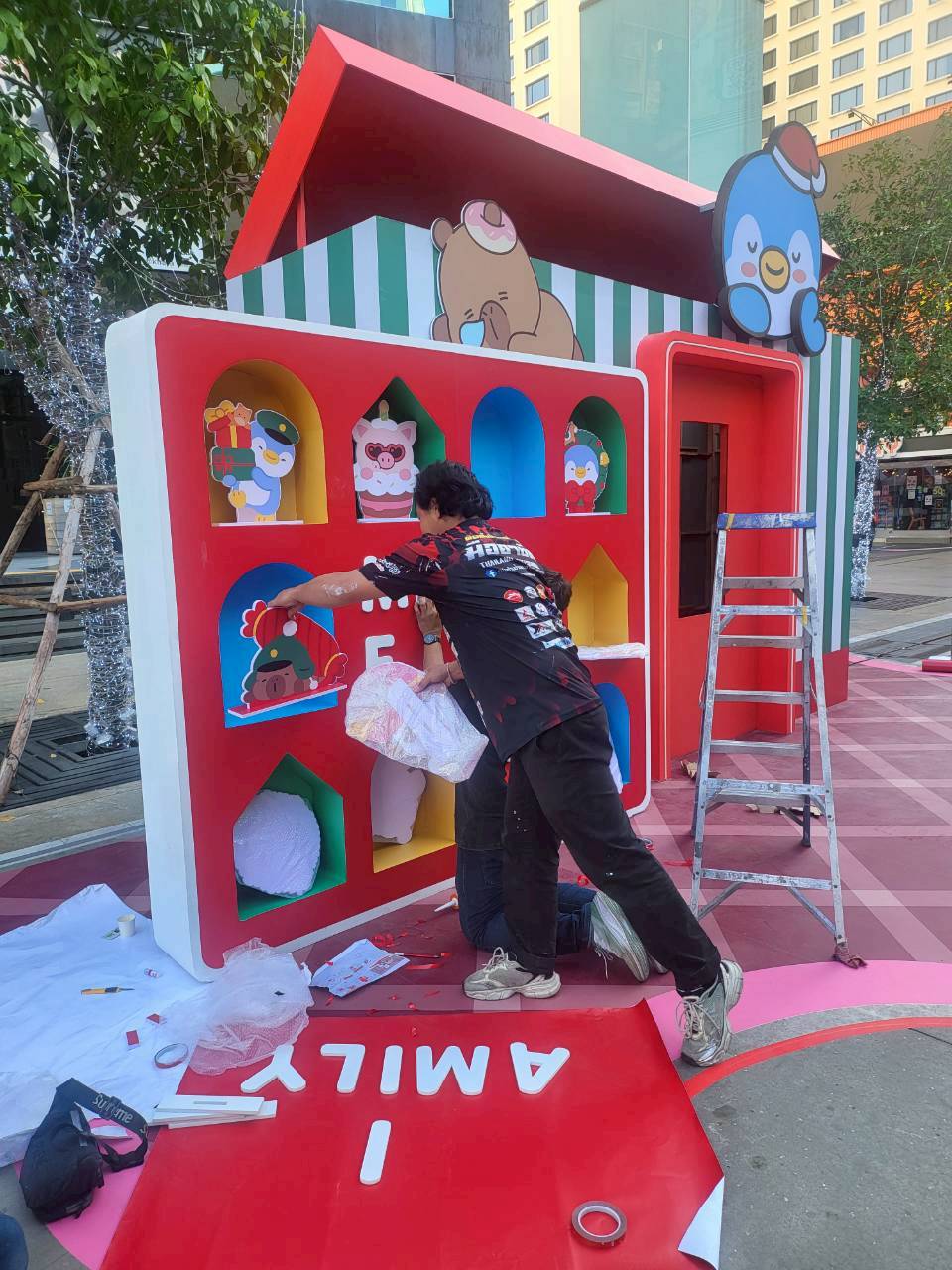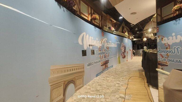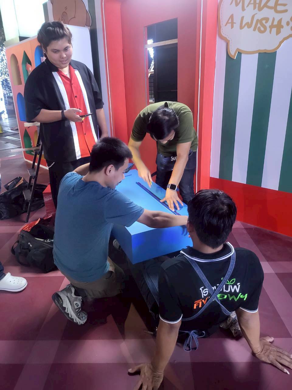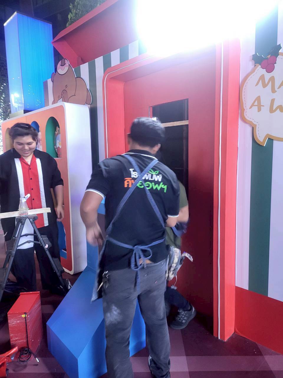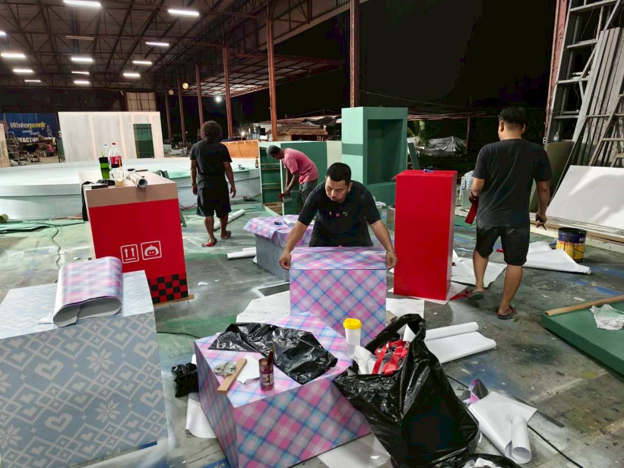 แบคดรอปโครงไม้ตีกล่อง / ท๊อปด้านหน้าด้วยสติ๊กเกอร์รีดลงโฟมบอร์ด