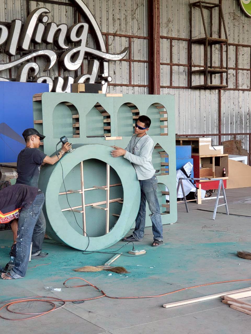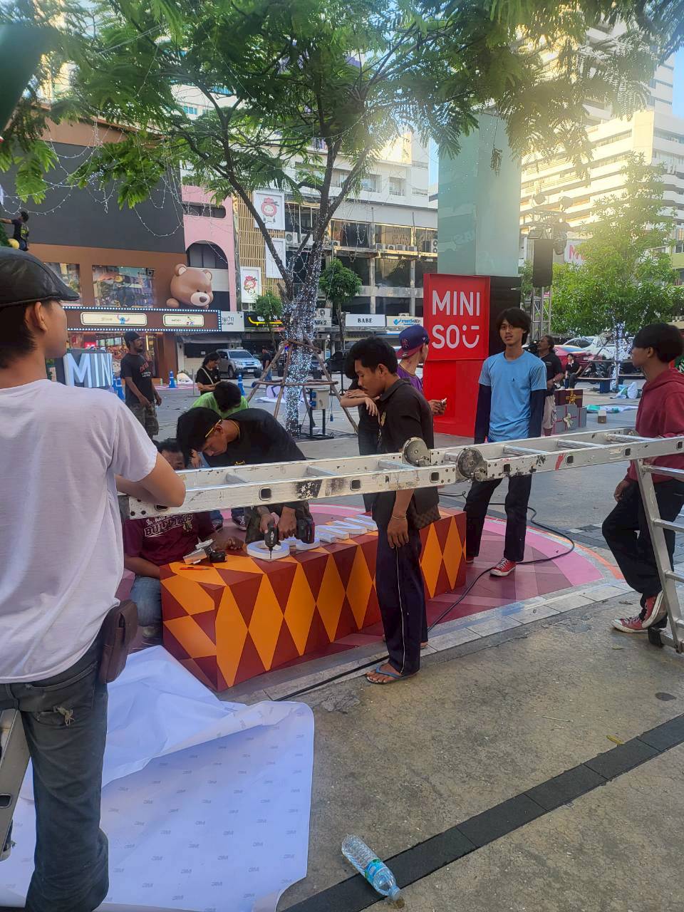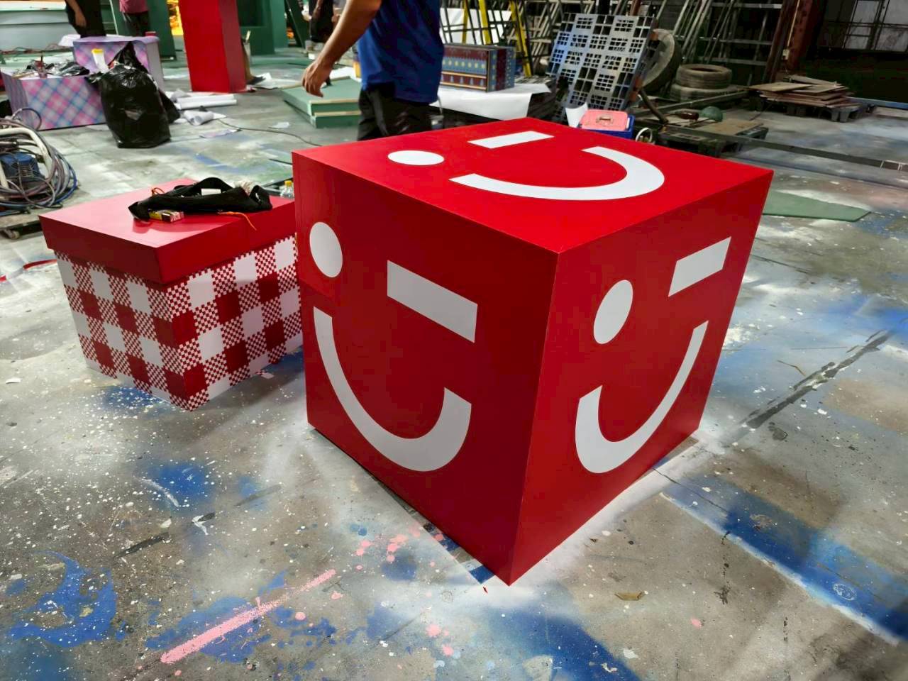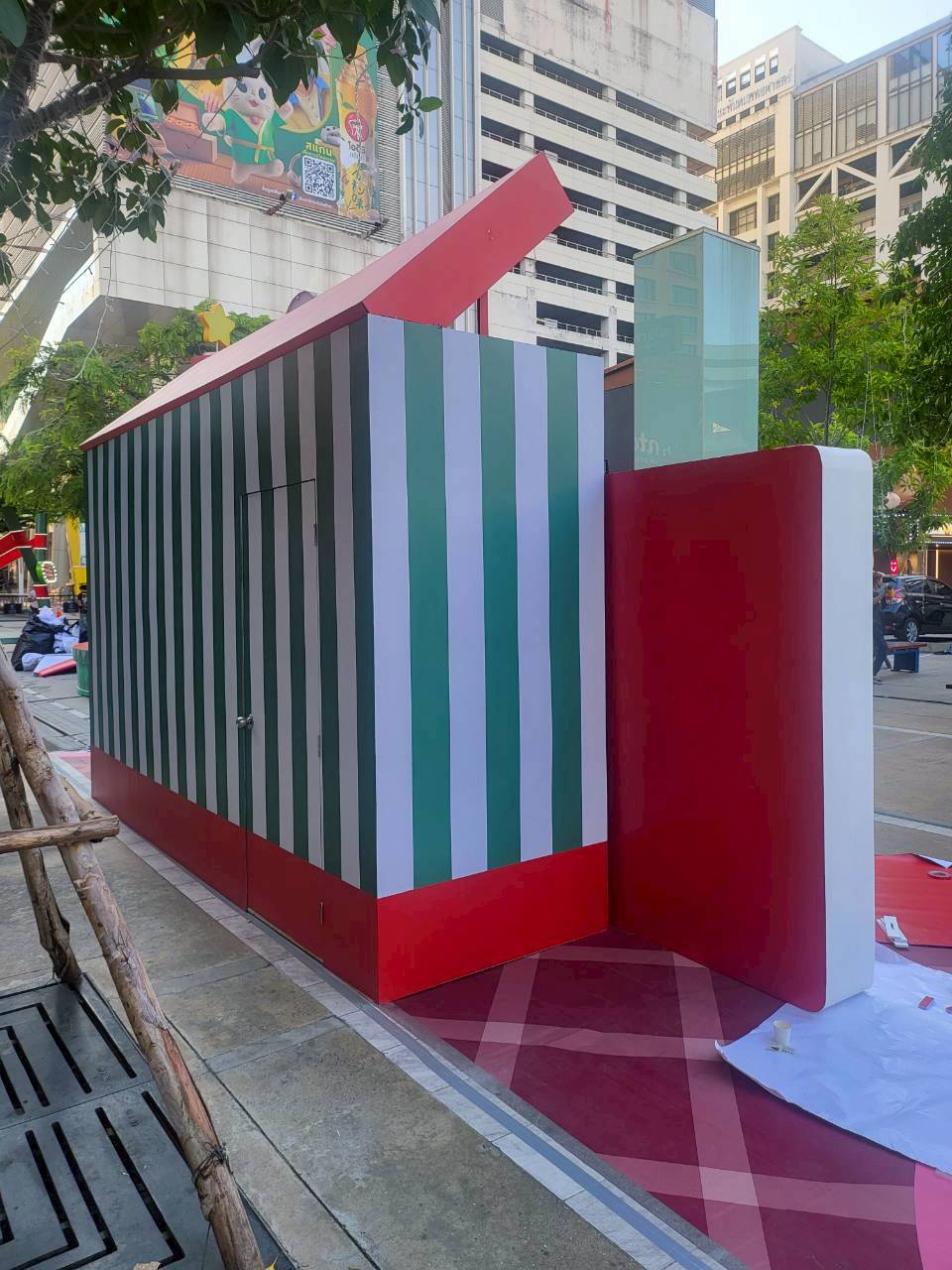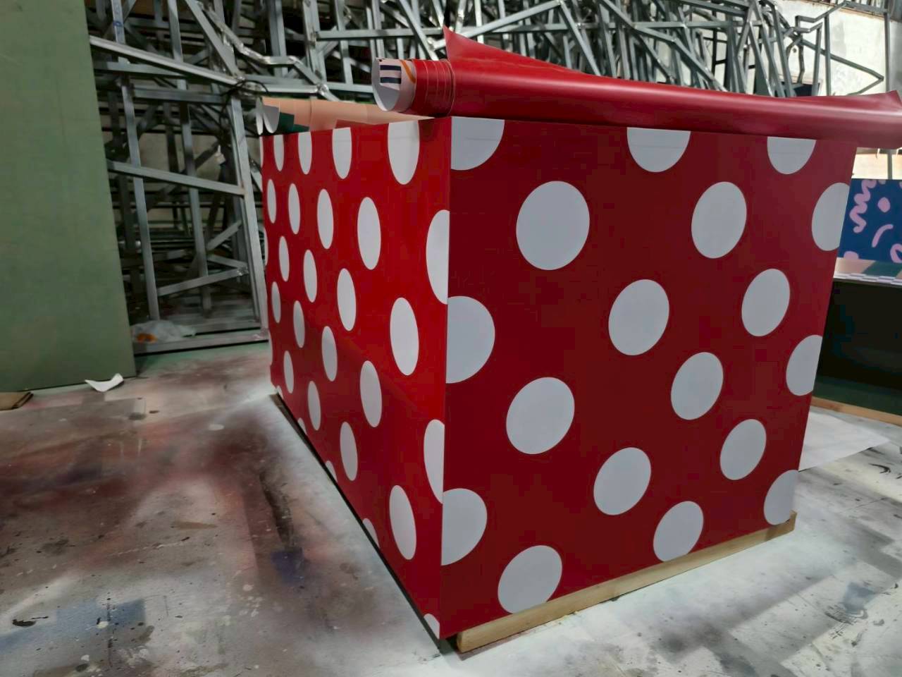 แบคดรอปโครงไม้ตีกล่อง / ท๊อปด้านหน้าด้วยสติ๊กเกอร์รีดลงโฟมบอร์ด
